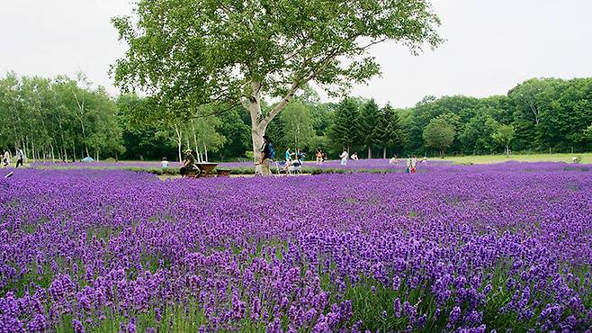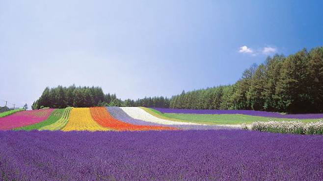 홋카이도를 대표하는 라벤더의 명소로 인기도 높고, 라벤더 이외에도 다양한 꽃밭을 즐길 수 있으며, 봄부터 가을까지 구릉을 물들입니다.