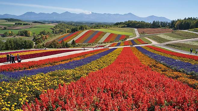 후라노 주변에서는 최대 규모를 자랑하는 꽃밭으로, 원내에는 꽃밭 외에 식당과 매점도 있어 6월 만개를 맞이하는 루피나스에서 시작되어, 7월 라벤더, 8월부터 9월에 걸쳐 샐비어나 달리아, 지니어 등 다채로운 꽃이 피어나게 됩니다. 화려하게 뿌려진 꽃들의 색채는 언덕에서 내려다 보이는 시골 풍경과 함께 홋카이도다운 광대한 파노라마 뷰입니다.