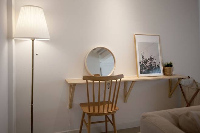 이곳은 화장대로 사용하는 공간인데요. 가끔 화병에 꽃을 꽂아서 때에 따라 다른 분위기를 연출하고 있어요.