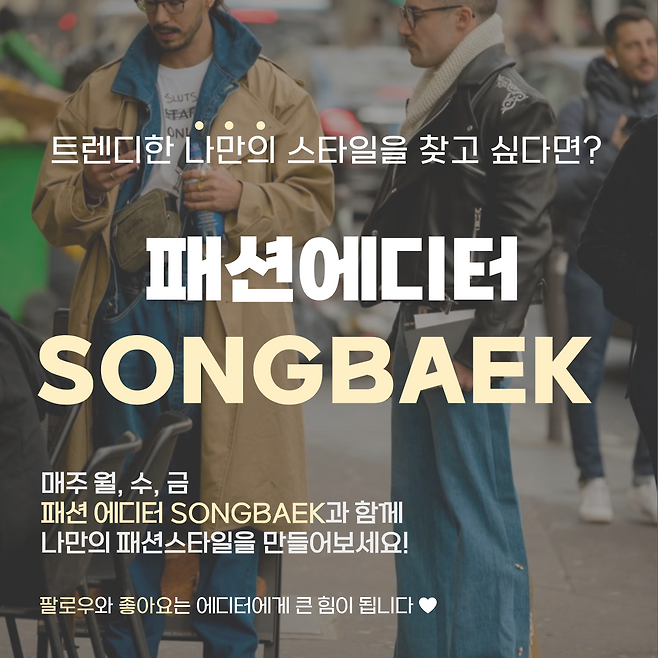 패션에디터 송백과 함께 살펴보러 가볼까요? 🏃🏃♂️