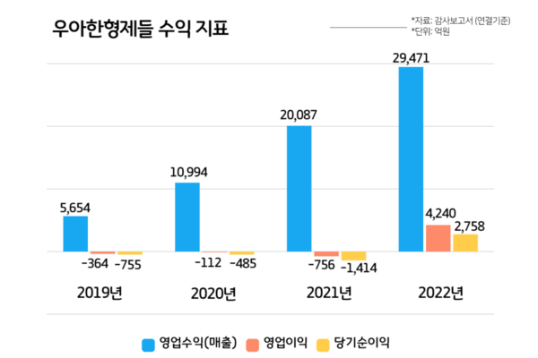 하지만 영업이익은 2021년까지 손실을 지속하다 2022년 4240억원으로 처음 흑자를 냈다. 이는 버는 돈이 많아져도 영업비용으로 나가는 돈이 만만치 않은 상황을 보여준다.