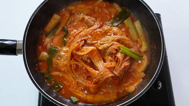 바글바글 끓으면 김치 사이에