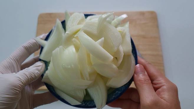 양파를 채 썰어주세요