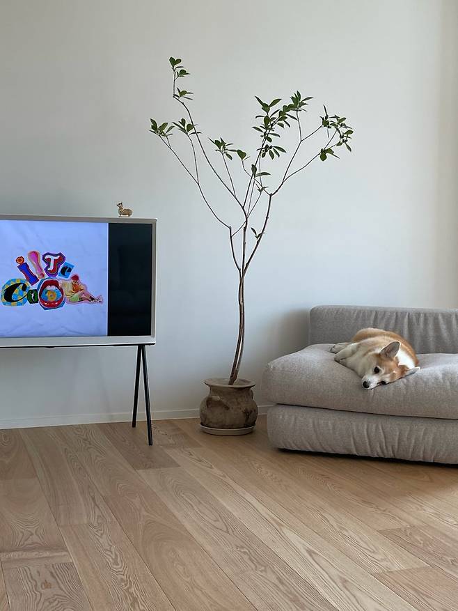 그리고 소파 자체가 높지가 않아서 짧은 다리를 소유한 저희 집 강아지도 가끔 올라와서 누워있는데, 그 모습이 너무 사랑스러운 것 같아요. 온 가족이 부비대고 시간을 잘 보내는 가구임에는 틀림없는 것 같아요 :)