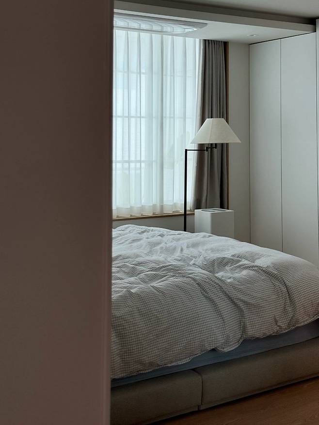 침실은 그야말로 침대와 옷장만 있는 심플한 공간이에요. 장신의 남편과 한 침대를 공유하려다 보니 꽤나 널찍한 침대를 들여오게 되면서 안방이 벌써 침대로 가득 차서 잠만 자는 공간으로 온전히 잘 쓰고 있답니다.