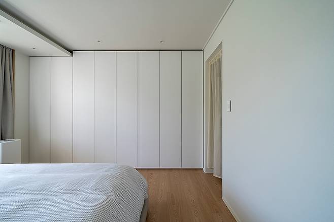 제가 옷을 많이 좋아하는 터라 안방에 붙박이장을 한쪽으로 몰아서 만들었어요. (이렇게 해도 공간이 모자라고, 옷은 더더욱 모자란 느낌은 무엇일까요?🥹) 옷을 안쪽으로 다 정리해서 넣을 수 있어서 너저분하게 돌아다니는 옷은 보지 않아도 돼서 좋더라고요.