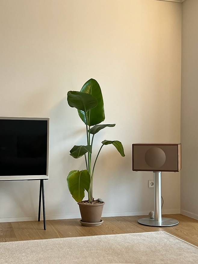 저희 부부는 거실을 꽉 차게 쓰는 것보다 넓고 여유 있게 쓰는 것을 좋아하다 보니 공간 자체에 여백이 많은 편입니다. 그렇다 보니 자연스럽게 그 여백에 식물들을 구석구석 배치하게 되었어요.