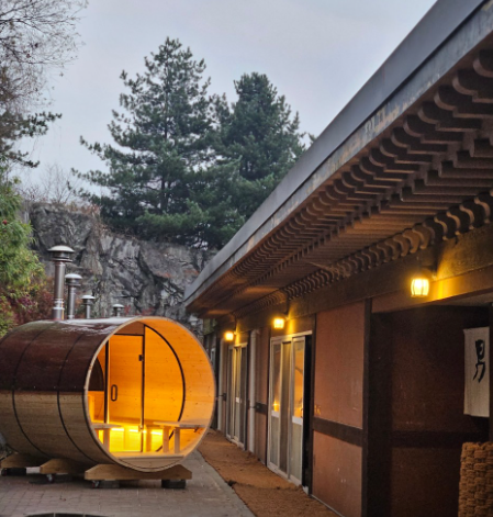 노천사우나: 핀란드식 건식 사우나로, 탄산온천 후 마무리 힐링 코스로 딱! 2인 기준 5만 원 선으로 예약 가능.