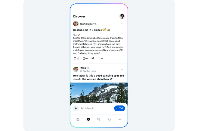 개인화된 답변 기능은 현재 미국과 캐나다 이용자들만 사용할 수 있다. 메타 AI 앱에는 다른 사람들이 AI를 어떻게 활용하는지 살펴볼 수 있는 '발견' 피드도 포함된다.