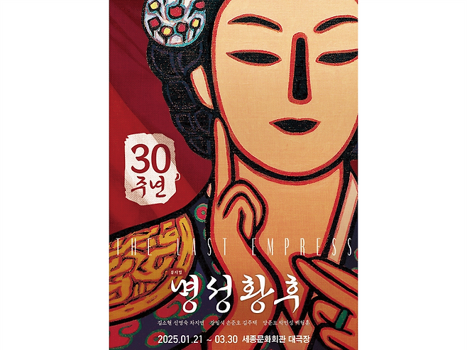 1995년 예술의전당에서 초연한 명성황후가 30주년 무대를 갖습니다. 이문열의 소설 ‘여우사냥’을 원작으로 조선의 국모이자 시대적 갈등의 중심에 선 명성황후의 삶을 그립니다. 배우 김소현과 신영숙, 차지연이 저마다의 명성황후를 연기합니다. 한국 음악계의 거장 김희갑 작곡가와 양인자 작사가는 우리의 정서가 담긴 넘버 50여 곡을 완성했습니다.