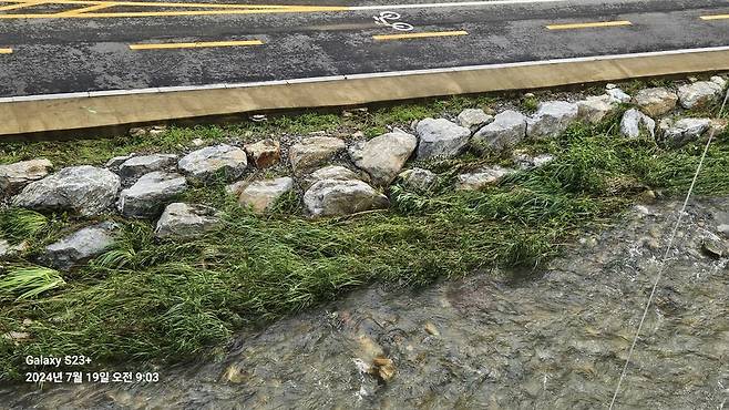 전날 폭우가 있었음이 느껴지는 장면이 보였습니다.