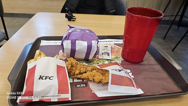 일단 정자역 5번 출구 근처 KFC에 들려 한 끼 때웁니다.