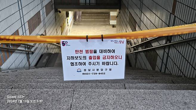 근처에 지하보도가 몇 있는데 전부 이런식으로 출입을 막았습니다.