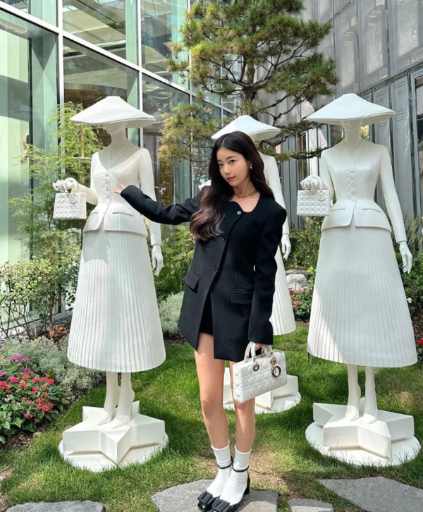 박시한 재킷안에 미니 원피스나 미니스커트 매치.
