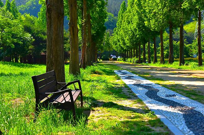 숲길 중간중간에는 벤치가 놓여 있어 언제든지 앉아 쉴 수 있고, 나뭇잎 사이로 스며드는 햇살과 불어오는 바람은 걷는 이에게 쾌적한 휴식을 선물한다.