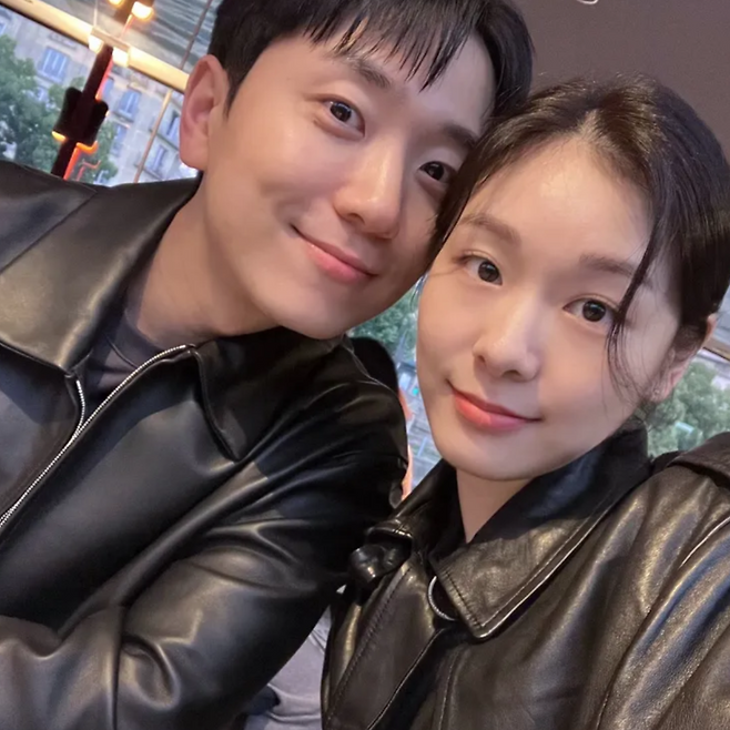 올블랙 데이트룩 (가죽 재킷 스타일) 두 사람은 블랙 가죽재킷으로 톤을 맞춰 조용하고 시크한 커플룩을 완성했다.