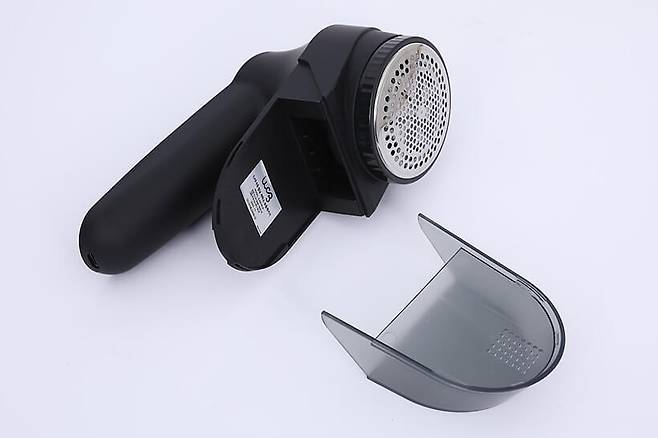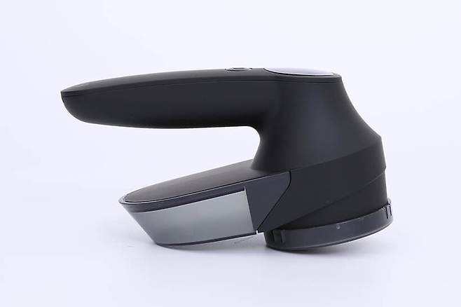 본체를 옆에서 바라보면 손잡이 아래로 반투명 재질의 보풀 저장함이 보인다.