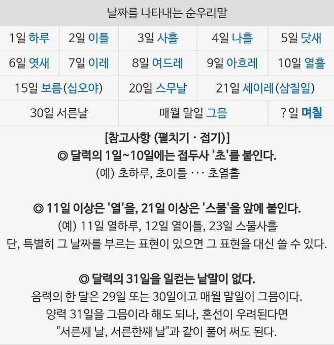 몇 일 (X)