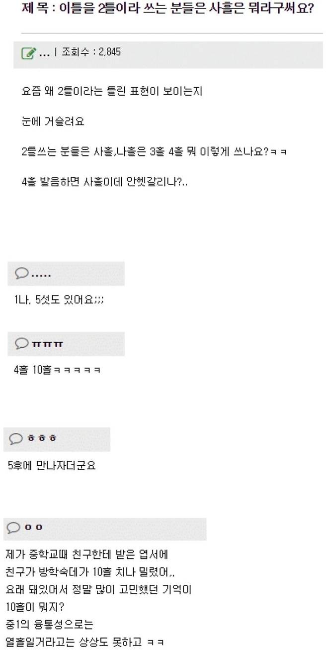 이틀을 2틀이라 쓰는 분들은 사흘은 뭐라구 써요?