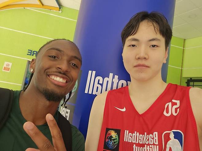 오늘은 어제보다 일찍 6시 40분에 일어나 7시에 아침을 먹었다. 오전부터 일정이 있어 8시 30분에 체육관으로 출발했다. 체육관에 가서는 몸을 다 같이 풀고 2대2, 3대2 트랜지션 속공 연습을 했다. 한국에서도 하던 걸 여기서 외국 친구들과 하니까 새로웠다. 속공 연습을 한 뒤에는 스킬트레이닝을 했다. 스킬은 NBA 선수 타이리스 맥시와 데릭 화이트가 왔다. TV로만 보던 선수들을 실제로 보니까 정말 멋있었다. 스킬을 받고난 후 팀을 간단히 짜고 5대5 게임을 했다. 외국 애들과 몸싸움을 하고 부딪혀 보니 아직 내가 부족하단걸 느꼈다. 다 끝난 후에는 Q&A 시간이 열렸다. 오래 앉아있어 보니 다리가 조금 저렸다. 다시 호텔로 돌아가 점심을 먹은 후 쉬다가 미디어데이를 했다. 자기소개 영상과 프로필 사진을 찍었다. 사진을 다 찍고 난 후엔 저녁을 먹고 애들과 이런 저런 얘기를 하다가 방에 와 잠을 잤다.