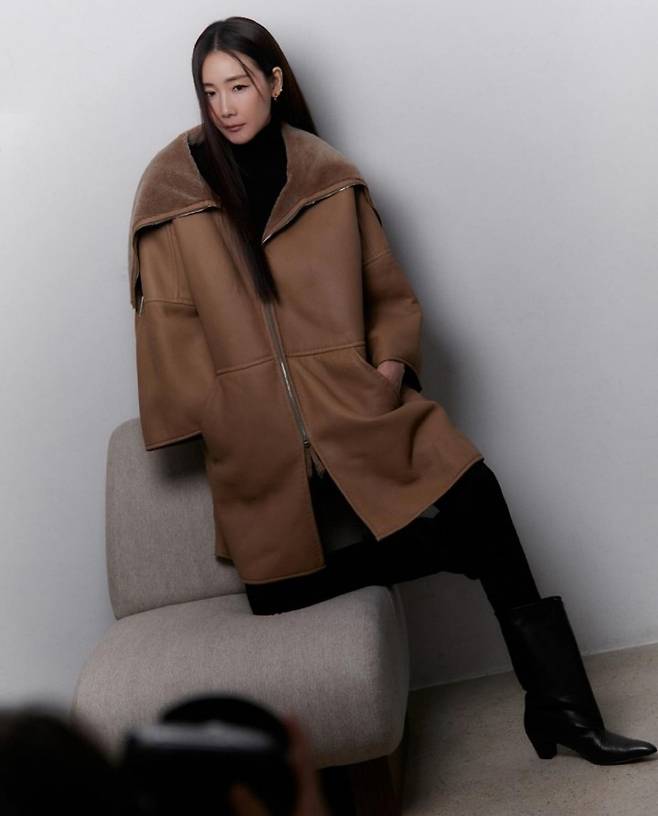 최지우는 카멜 코트와 무스탕, 가죽 트렌치코트 등 여러 종류의 다양한 아우터를 연출했습니다. 특히 최지우는 긴 생머리로 청순한 동안 미모를 자랑하며 프로페셔널한 포즈를 선보여 시선을 모았습니다.