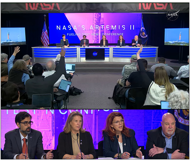 <아르테미스Ⅱ의 습식 예행연습 결과를 설명 중인 나사의 기자회견 모습-2월 4일>