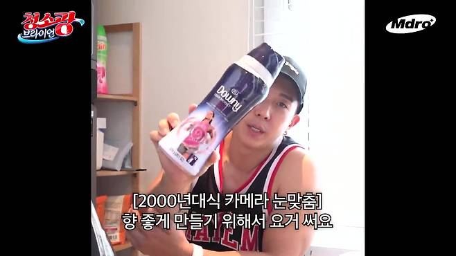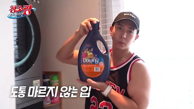 땀에 젖은 운동복 세탁하려는 브라이언이 꺼내 든 또 다른 제품은 바로 '다우니 스포츠'다. 스포츠 의류 전용 섬유 유연제가 있다는 사실! 운동복 빨래를 할 때 전용 제품을 넣어주면 섬유 보호와 향기까지 다 잡을 수 있다.