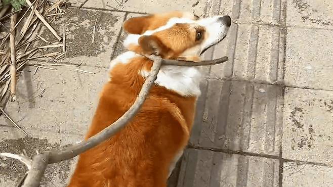 어느 날 강아지와 산책을 나선 견주가 갑자기 ‘아차!’ 하고 목줄을 잊었다는 사실을 깨닫습니다. 강아지를 그냥 풀어놓을 수는 없고, 그렇다고 집에 다녀오자니 귀찮았는데 마침 견주의 눈에 들어온 것은 길가에 떨어진 나뭇가지였습니다.
