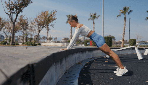 벤치나 안정적인 도구 위에 두 손을 짚고 엎드려 몸을 곧게 유지합니다. 오른쪽 무릎을 가슴 쪽으로 당겼다가 원위치로 되돌리고, 이어서 왼쪽 무릎도 같은 방식으로 당겼다가 되돌립니다.