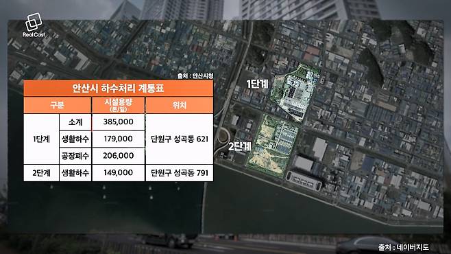 실제로 성곡동에는 하루 38만 5천톤의 하수를 처리하는 1단계 하수처리장과 14만 9천 톤을 처리하는 2단계 하수처리장이 운영되고 있습니다. 반달섬에서 채 2km도 되지 않는 거리입니다.