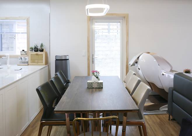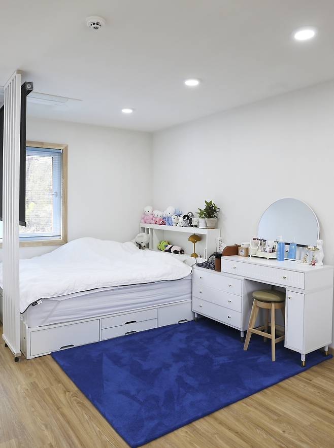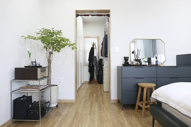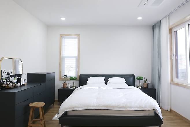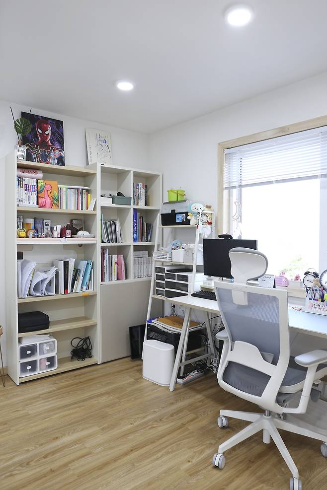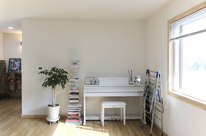 내부도 마찬가지였다. 우드 앤 화이트 톤으로 마감한 실내는 자연친화적이면서 화사하고 아늑한 분위기를 풍겼다. 그도 그럴 것이 건축주가 집을 지을 때 철근콘크리트조 대신 경량 목구조를 선택했고 내벽 마감도 벽지가 아닌 친환경 황토페인트로 선택한 것이었다. 이러한 건축주의 신중한 선택은 건강이 개선되는 결과로도 이어졌다.