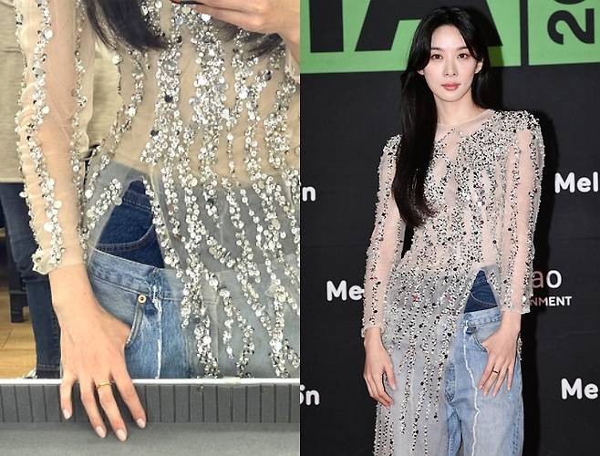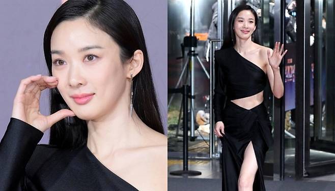 지난해 12월 31일 서울 상암동 SBS 프리즘타워에서 진행된 ‘2022 SBS 연기대상’ 레드 카펫 행사에 등장한 이청아의 드레스가 화제가 됐다.