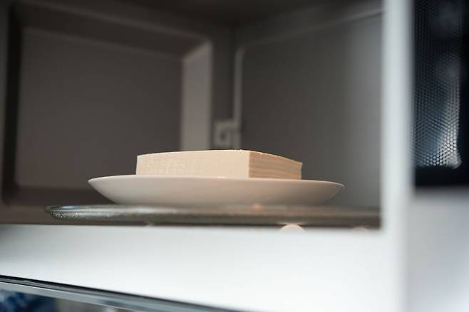 2. 전자레인지에서 1~2분간 데워 따뜻하게 만든다. (끓이듯 오래 돌리면 물이 생길 수 있으니 주의한다.)