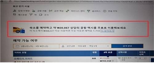 부킹닷컴은 실제 제공하지 않는 '무료 공항택시 서비스' 광고를 소비자에게 노출한 것으로 나타났습니다.