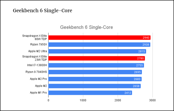 폰아레나(Fonearena.com) 등을 통해 유출된 성능 테스트 자료에 의하면 모바일용 스냅드래곤 X Elite가 데스크톱용 라이젠 7800X3D나 7700X와 비슷한 수준의 연산 성능이라고 합니다. 사실이라면 굉장하네요. 게다가 전력 효율성은 더 뛰어나서 노트북 사용 시간이 획기적으로 길어질 것이라고 하구요.