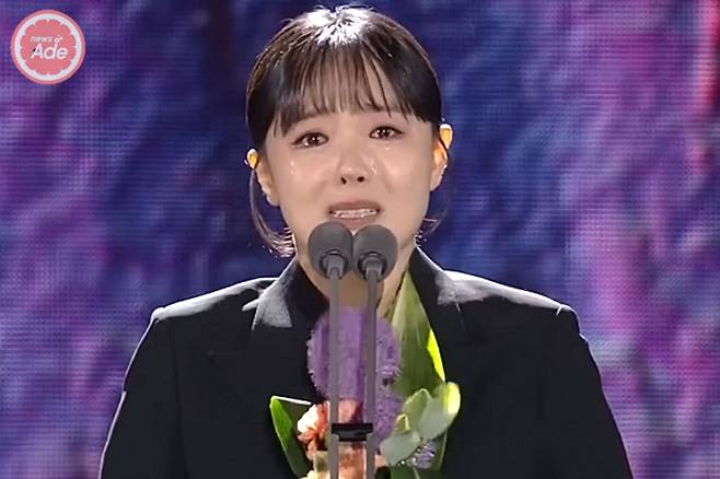 수상자로 호명되자 이상희는 눈물을 머금고 무대에 올라 도움을 준 이들에게 감사 인사를 전했다.
