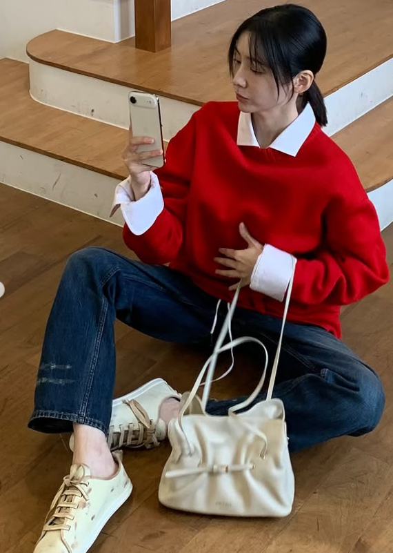 #박지현 #박지현패션 #레드니트 #프레피룩 #가을코디 #프라다 #은중과상연 #OOTD