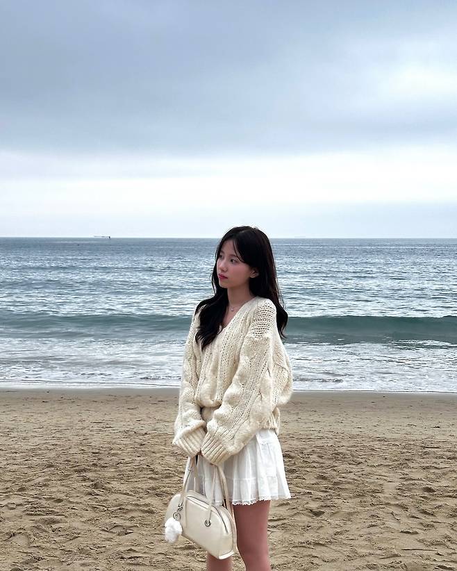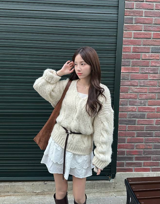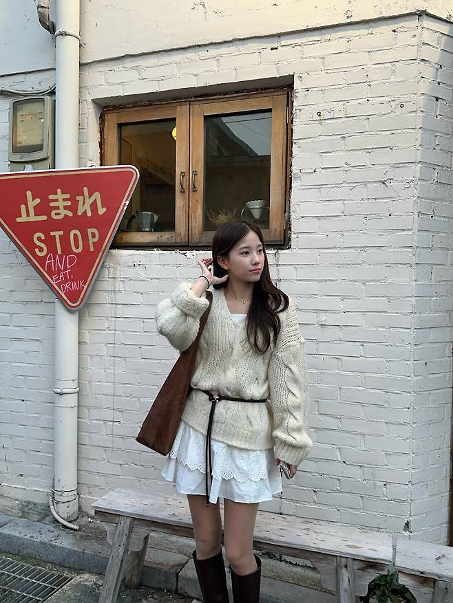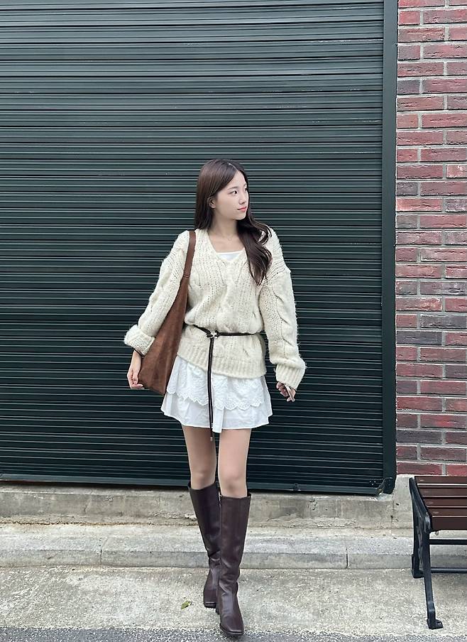 🧶 Look 2. 보호 본능 자극, 오버핏 니트 & 미니스커트