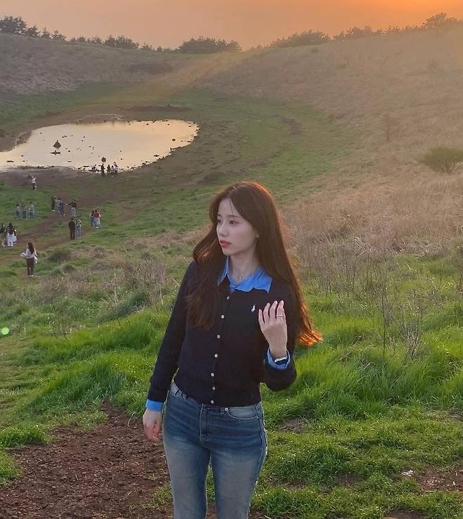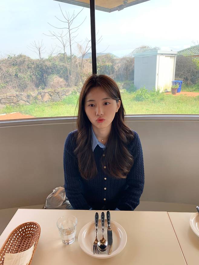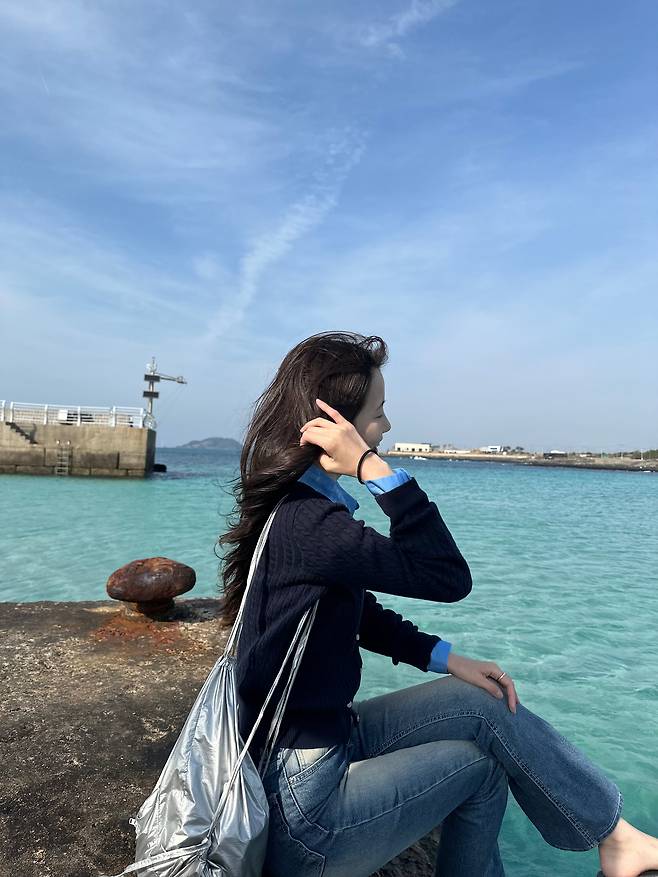 저는 폴로 네이비 가디건 안에 쨍한 파란색 셔츠를 레이어드해 톤온톤 매력을 살렸어요.