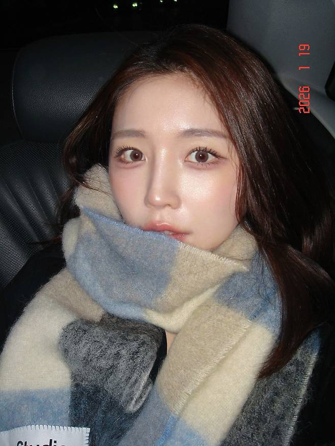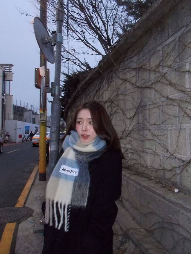 사진 속 성해은은 짙은 블랙 코트 위에 화이트와 블루, 그레이가 조화롭게 섞인 큼직한 체크 패턴 머플러를 둘러 따뜻하면서도 세련된 무드를 연출했는데요.