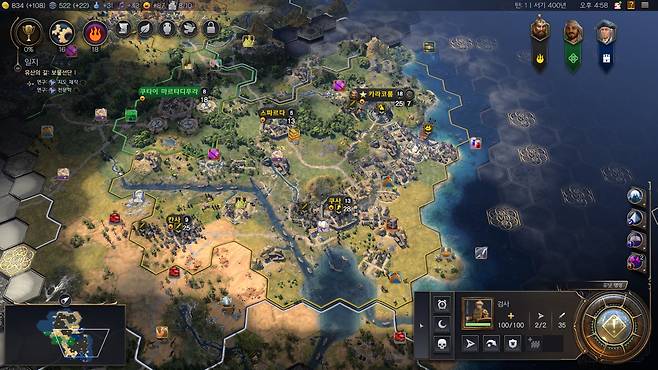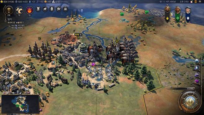 그렇게 감을 잡아가면서 왕국을 팽창하게 됩니다. 주변의 다른 문명들과 때로는 협력하고 때로는 반목하다 보면 다음 페이즈로 넘어가게 됩니다.