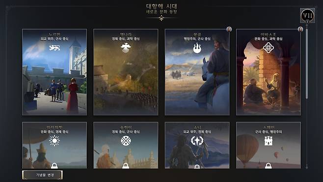 새로운 시대로 진입함에 따라 발생하는 가장 큰 변화는 문화 선택입니다. 문명7의 가장 큰 특징으로 꼽히는 문화 선택은 선택한 지도자는 그대로 계승되지만 이에 반해 완전히 다른 문화로 바꿀 수 있는 시스템입니다.