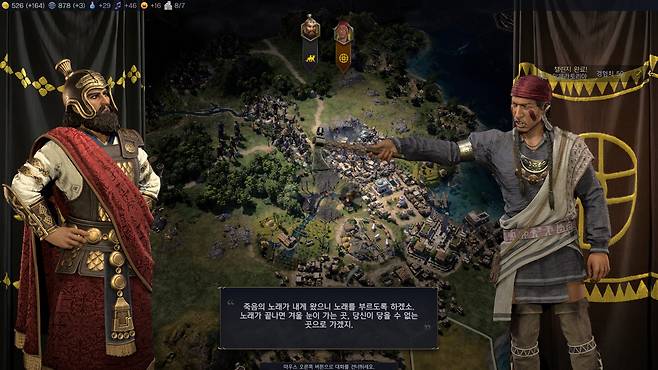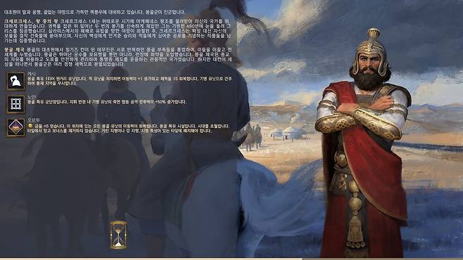 문제는 영웅은 그대로인데 문화만 바뀐다는 것에 있습니다. 중동 지역의 영웅 크세르크세스가 일순간 몽골 제국의 리더가 되는 상황이 상당히 어색했습니다. 물론 게임이라는 상상 속 세상에서 이런 저런 판타지적 설정이 용인되는 것은 당연하다 할 수도 있지만, 등장인물, 문명 모두가 실제 역사를 바탕으로 하고 있기 때문에 파격적인 변화는 수긍이 어렵고 그로 인해 게임에 대한 몰입감도 떨어지게 됩니다.