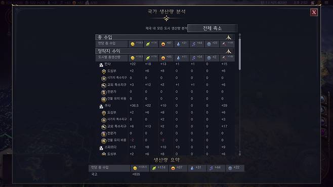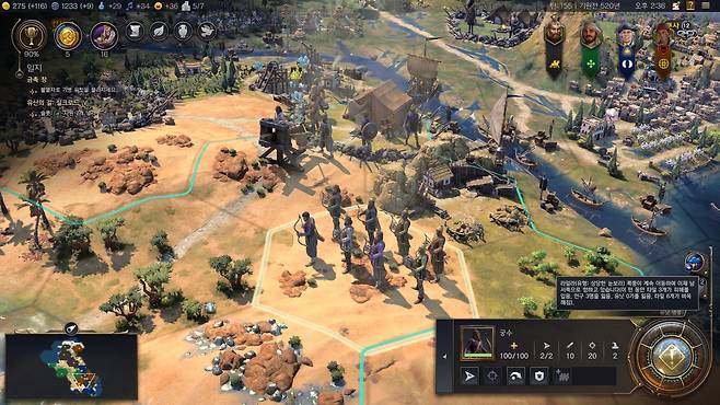 이런 류의 게임이 항상 그렇듯 초반 쏟아지는 상당량의 정보를 파악하는데 애를 써야 합니다. 어떤 건물이 어떤 영향을 주는지, 전투 유닛은 어느 타이밍에 얼마나 생산해야 하는지, 자원에 따른 생산량 조절은 어떤 방식으로 잡아가야 하는지, 주변 국가와의 관계는 어떻게 만들어가야 하는지 등 전작을 해보지 않은 유저에게는 초반 허들이 상당히 높습니다.