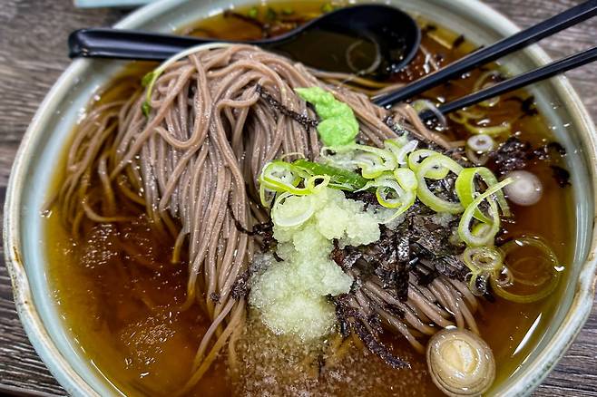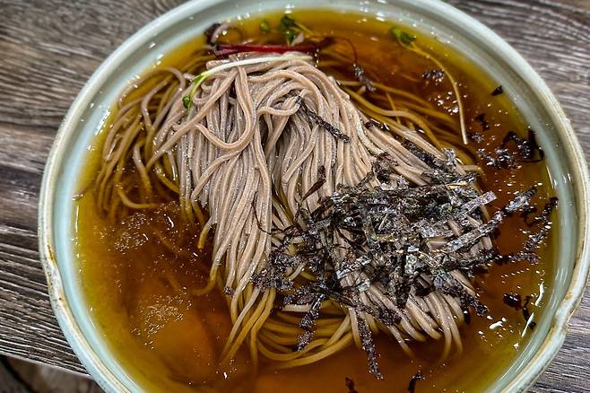 [리뷰타임스=윤지상(수시로) 기자] 토요일 오전 이른 운동을 하고 점심때가 지난 2시경. 일행 중 한 명이 근처에 좋은 메밀국수가 있다고 해서 장소는 결정. 점심때가 한참 지났으니 한가하겠다는 한가한 생각을 하며 도착했더니 헐! 그 넓은 주차장이 꽉 차 있고 2시가 넘었는데도 웨이팅이다. 갑자기 승부욕 발동. 무조건 기다려서 먹는다. 비가 추적추적 오는데 밖에서 약 15분 정도 대기를 하니 이름을 불러 자리에 앉았다. 테이블은 빠지면 바로 연속으로 채워진다. 꽤 넓은 실내이고 테이블도 많은데 이 불경기 속에 놀라운 광경이 아닌가? 주변에는 온통 물류센터가 즐비한 곳에 사람이 이렇게 많이 몰리다니 대단한 흡입력이다.