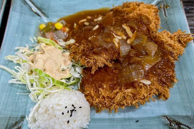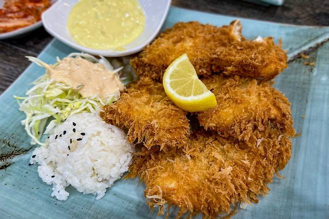 곧이어 나온 생선까스와 돈까스는 이 집의 또 다른 별미다. 바삭하게 튀겨낸 생선까스는 기름기 없이 깔끔하며, 속살은 촉촉하고 고소하다. 돈까스 역시 도톰한 고기 두께에 놀라고, 씹을수록 퍼지는 소스의 풍미에 다시 한번 놀란다. 무엇보다도 인공적인 맛이 없다는 점에서 이 집의 음식 철학이 엿보인다. 함께 나온 샐러드와 소스까지 하나하나 정성이 묻어 있다.