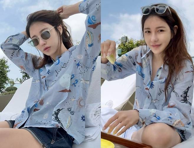 배우 이지아가 감성적인 프린팅 셔츠와 데님 쇼츠의 조화로 휴양지 무드를 담은 세련된 썸머룩을 선보였습니다.