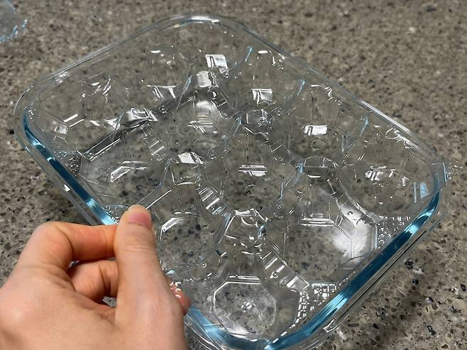그럴 땐, 계란판과 함께 딸려오는 이 뚜껑 부분을 활용해 보세요. 이 뚜껑이야말로 좁은 냉장고 공간을 효율적으로 활용할 수 있는 아이템입니다.