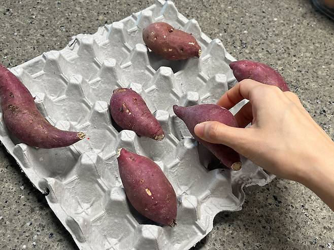 특히 예민한 고구마나 껍질이 얇은 햇감자는 서로 부딪히며 생기는 작은 상처로도 금방 상하곤 합니다. 계란판의 칸칸이 분리된 공간은 서로 닿지 않게 칸막이 역할을 해주어 상처가 번지는 것을 막아줍니다. 빛을 차단해야 하는 감자의 경우, 계란판에 올린 뒤 신문지를 살짝 덮어두면 신선함이 배가됩니다.