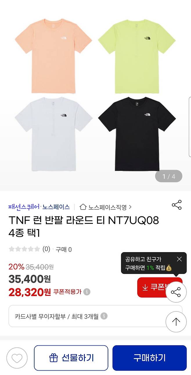 9월 초에 런닝용으로 구매한 노스페이스 티셔츠입니다